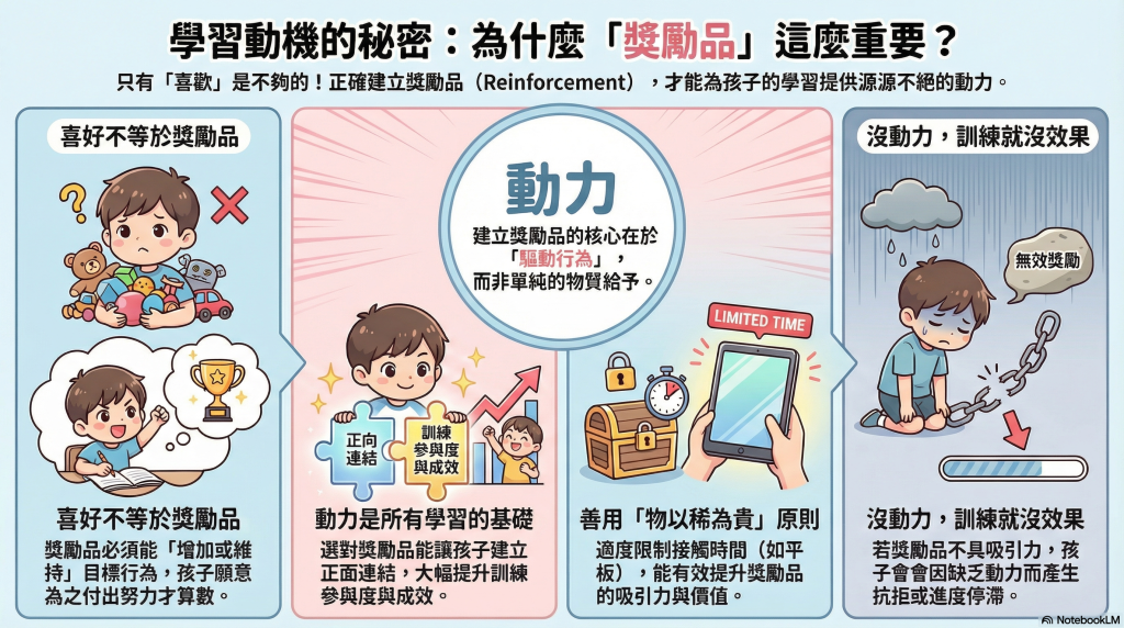 建立多元化 reinforcement 的目的,在於維持學習的穩定性與持續性。當孩子對不同物品或活動保持興趣,學習動機便不會過度依賴單一獎勵來源。
